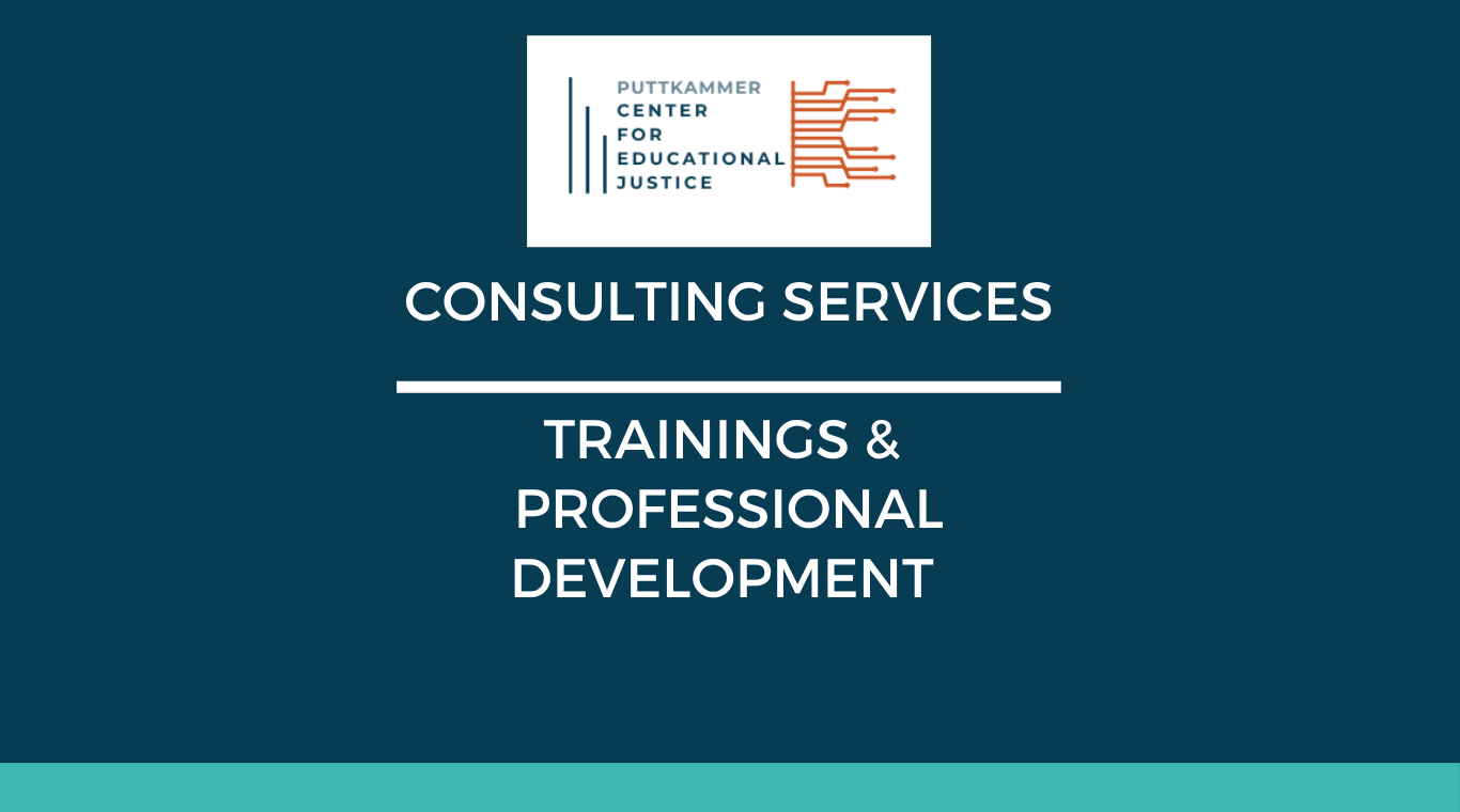 The Puttkammer Center for Educational Justice offers trainings and professional development services to help community organizations, companies, and universities develop systems and tools to advance educational justice inside and outside carceral spaces.
